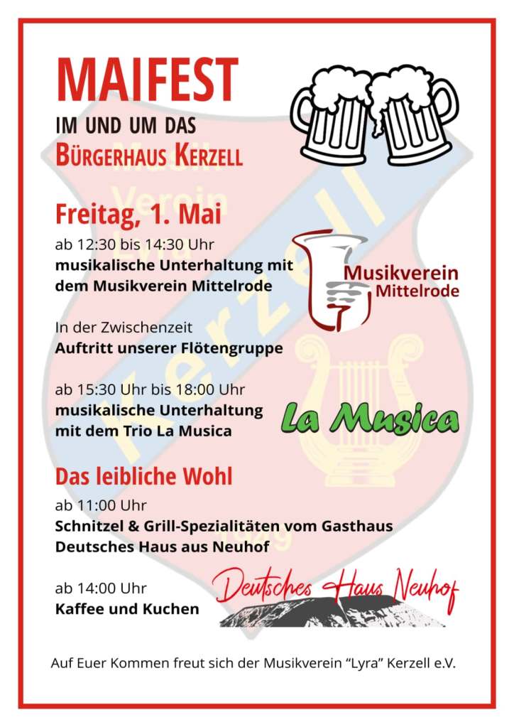 Der Rhönklub ZV Neuhof lädt für Freitag, den 01. Mai 2026 zur „Maiwanderung“ ein. Die Wanderung führt vom Gemeindezentrum in Neuhof durchs „Grüne Dreieck“ zur alten Bundesstraße B 40. Weiter geht’s am ehemaligen Froschwirt in Dorfborn vorbei in Richtung Tiefengruben und über den Sportplatz Kerzell zum DGH in Kerzell. Der Schlusshock mit gutem Kaffee, leckeren Kuchen oder deftigem vom Grill findet gegen 11:30 Uhr vorm DGH statt. Der Weg zurück kann individuell alleine gelaufen werden oder um 16:00 Uhr mit dem Wanderführer.